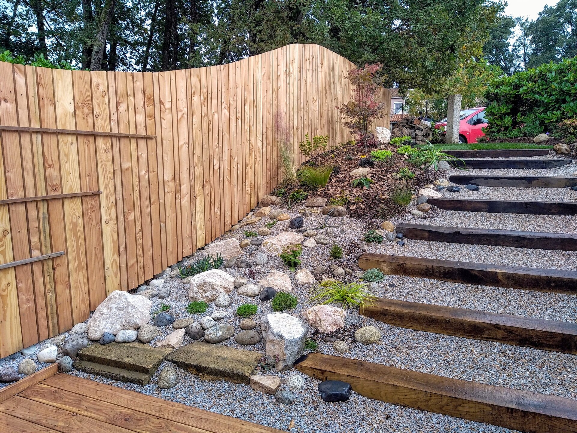 Votre terrasse se transformera ainsi en un lieu de vie à part entière, où il fait bon se détendre, jouer, dîner ou simplement profiter de la nature. La magie de l'aménagement réalisé par Jardin Nature réside dans sa capacité à fusionner beauté naturelle, praticité et respect de l'environnement.